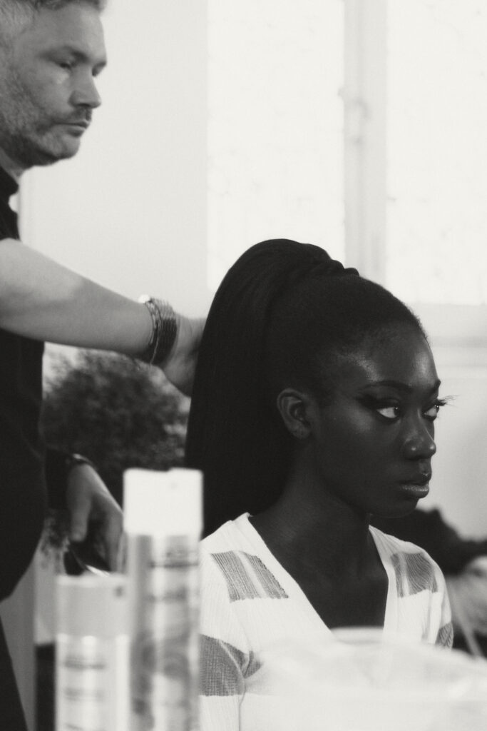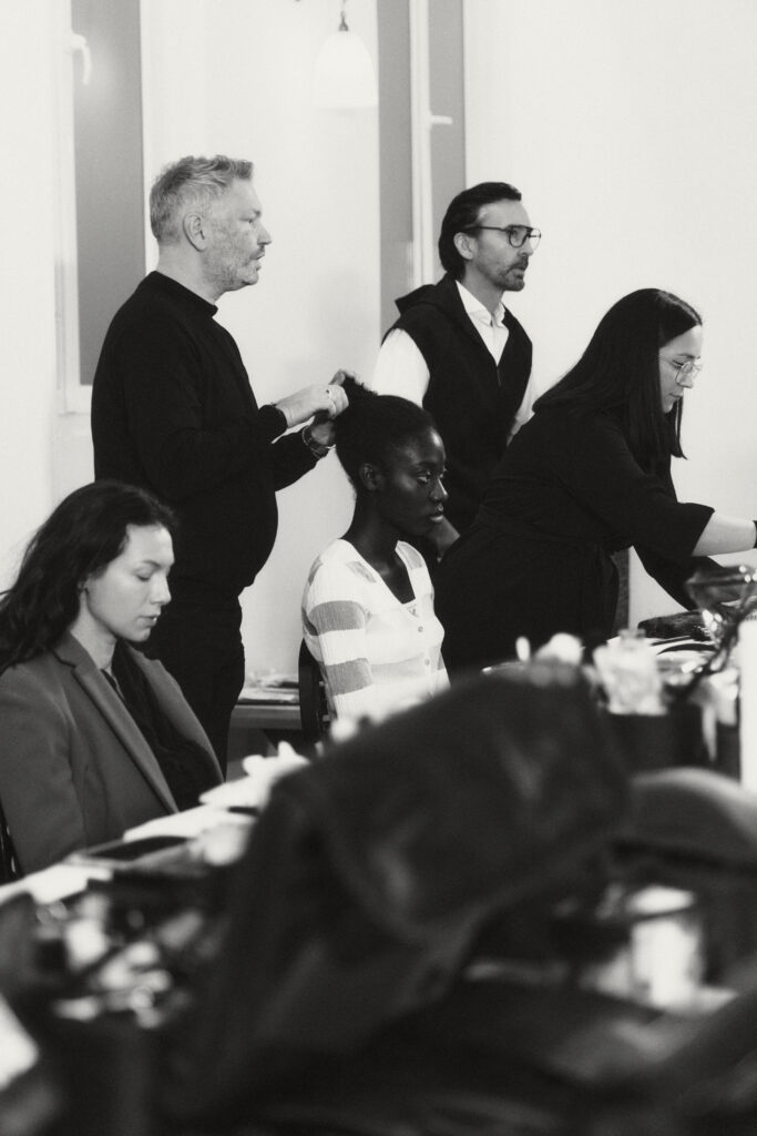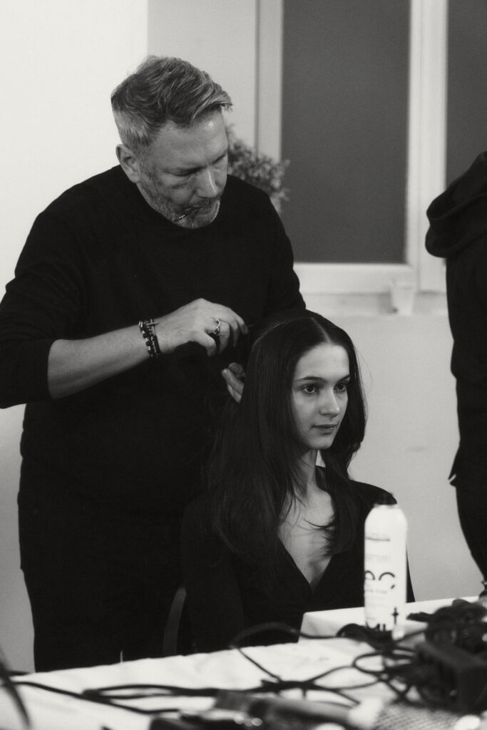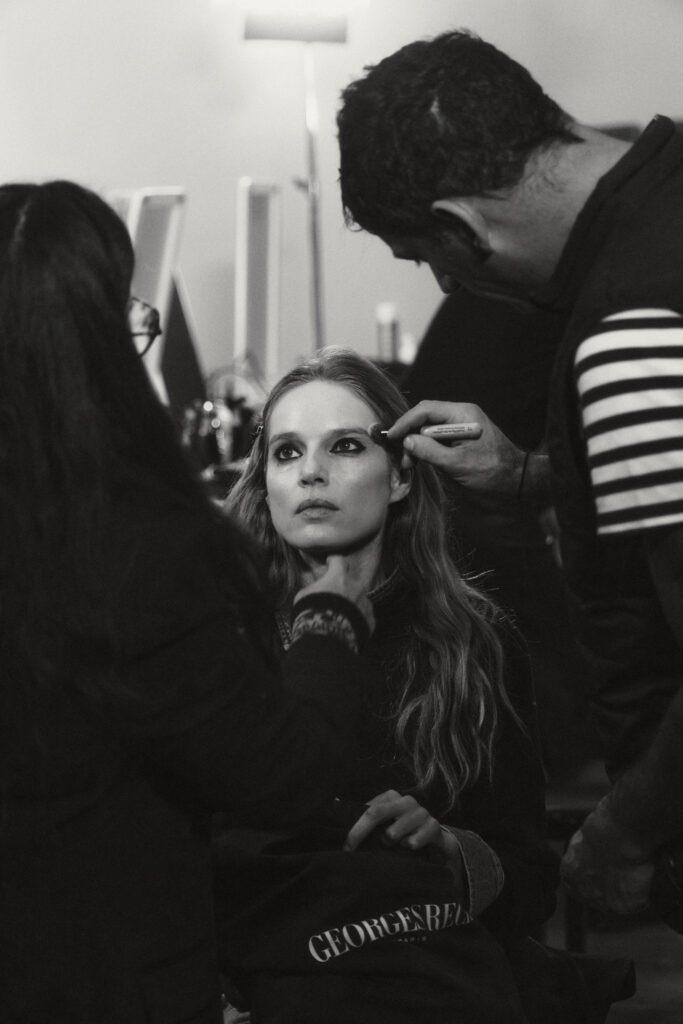 While the runway delivered a mythic spectacle of silhouettes and symphonic couture, the true pulse of Symphonie Barbare lived behind the scenes. Backstage, far from the orchestral soundtrack and the glint of runway lighting, a quieter — yet no less powerful — drama unfolded. And it is here that photographer Alexey Kostromin turned his lens.