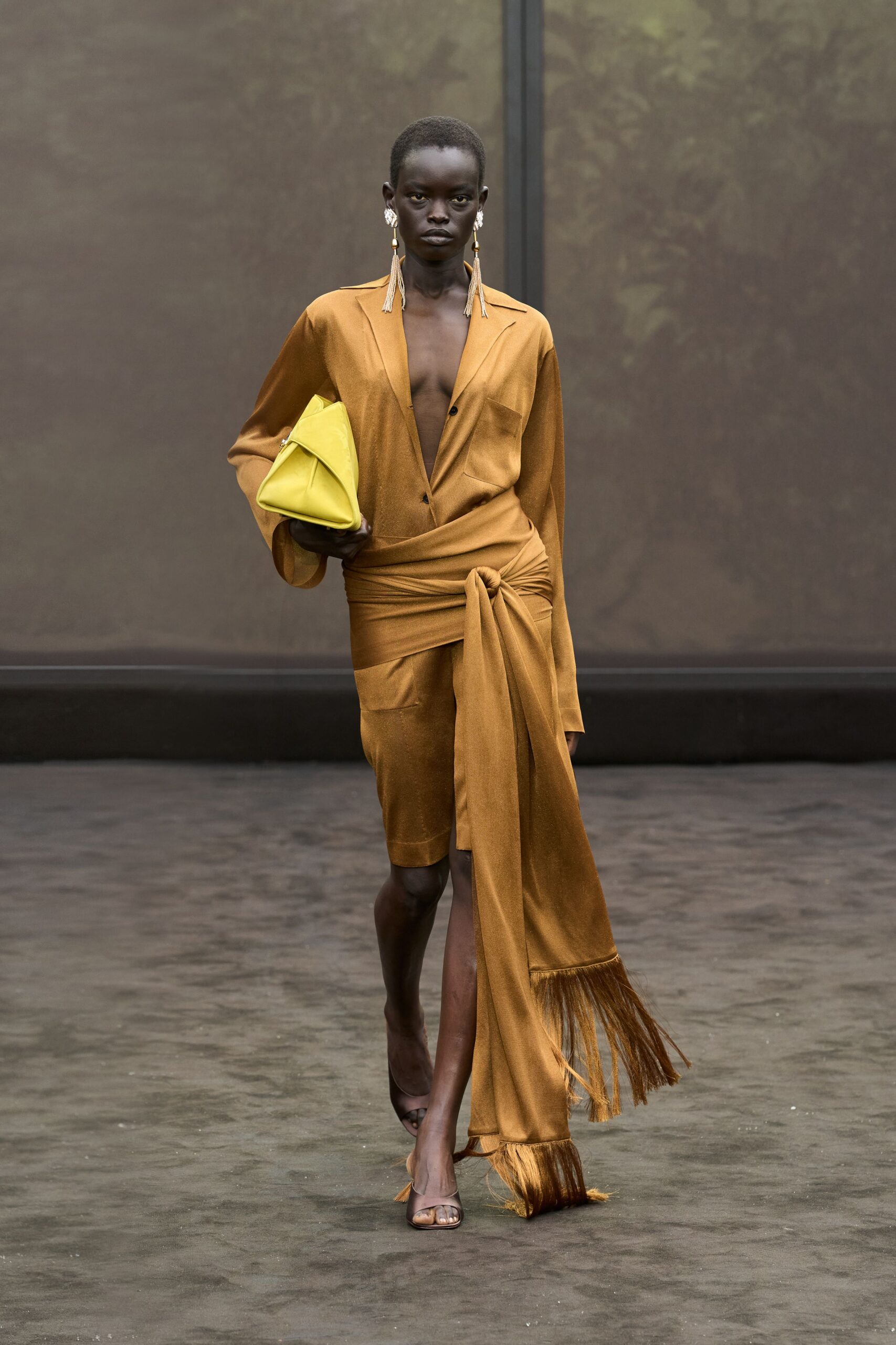 The textures themselves spoke in quiet yet insistent voices. Satin, chiffon, and delicate fringe conspired to blur the boundaries between movement and stillness, between the body and its projection. Prints inspired by 1920s “Africana” motifs, reimagined with a contemporary palette, served as reminders that fashion is not only aesthetic—it is anthropological, ethical, and profoundly human. Each piece was a meditation, a frame in which the wearer might step into both the glamour of the past and the potential of a liberated future.