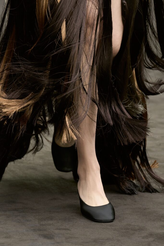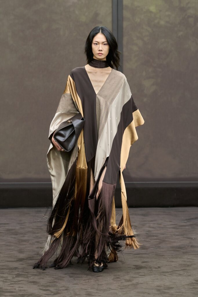 Silk gowns cascaded with the lightness of wind-swept jazz, fringes swaying like whispered secrets in a dimly lit speakeasy. Low-waisted dresses, embroidered lace, and subtle animal prints evoked Lola Todd’s cinematic elegance, yet each stitch carried a modern insistence: that femininity is neither static nor submissive, but an ever-shifting geometry of power, vulnerability, and grace. In this dialogue between eras, Davis posed an unspoken question: how do we inhabit history without becoming its shadow?