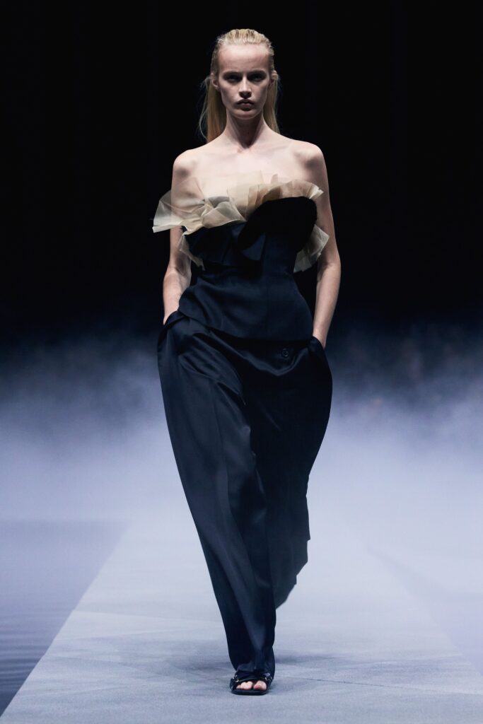 What emerged on the runway was not merely clothing but a study in contrasts: the rigidity of structure against the spontaneity of form, the audacity of volume tempered by moments of fragility, silhouettes that carried the discipline of precision while deliberately allowing space for asymmetry, even hesitation. This was confidence rendered not as perfection but as evolution — as the kind of beauty that reveals itself only when control loosens its grip.