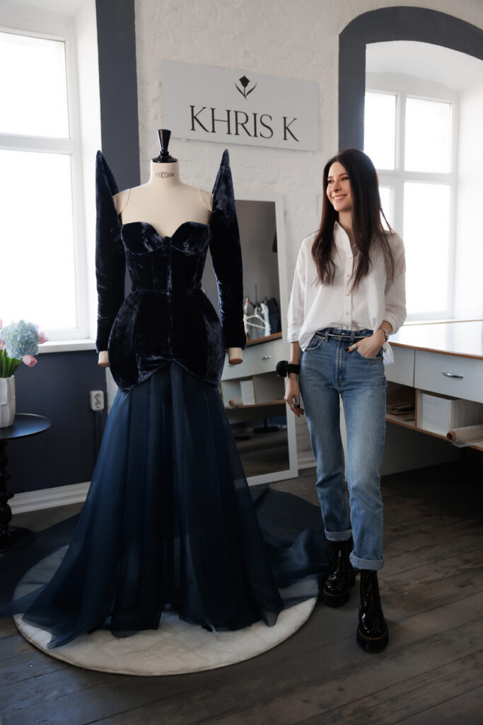 KK – In times of collapse, creating beauty becomes a quiet rebellion – a beacon of hope that persists even when the world feels fragile. Each piece I design is meant to honor a woman’s authenticity, allowing her to reveal her inner strength and quiet power. Fashion, for me, is a language through which she can express herself fully, without compromise, showing the world who she truly is while holding onto her grace and essence.