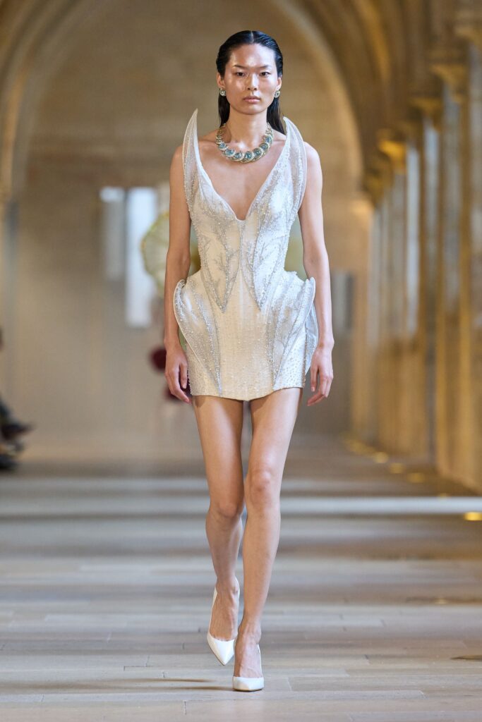 But this is not just about love as desire. It is about love as practice. Love as architecture. Through surrender, the garments become quieter, softer. The embroidery dissolves into gesture. Shapes begin to echo breath, rib, wave. By the time we arrive at the seventh emotion, we are no longer looking at fashion. We are inside a temple.