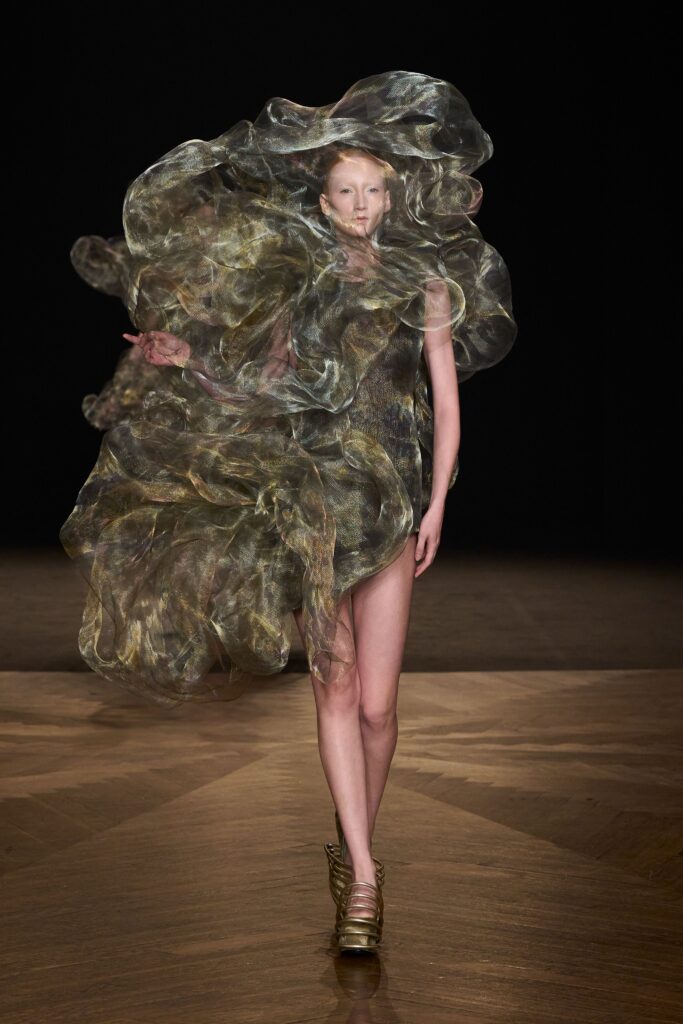 There is an almost devotional quality to this act of creation. Not built, but nurtured; not fabricated, but fostered. In a time when speed dominates all aspects of culture, Van Herpen offers a profound resistance: the gesture of patience. The dress was grown over weeks. Its choreography rehearsed not just by human body, but by organismic rhythm. This is not fashion as object it is fashion as ecology.