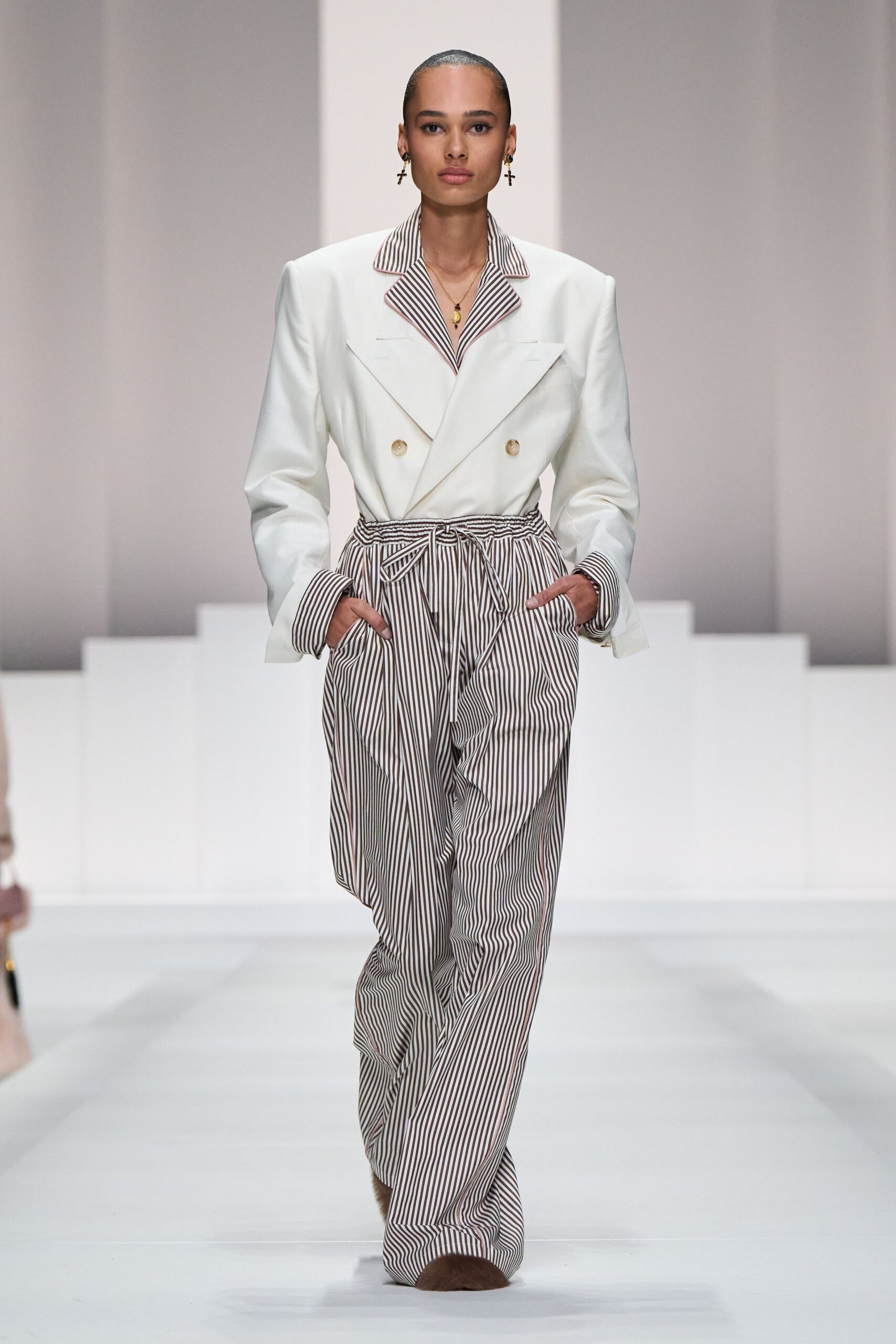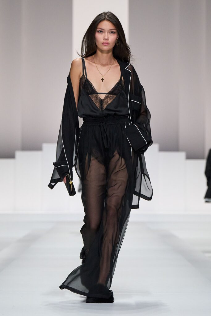 Milan, once again, became both altar and temple of fashion. Amid crystals, brocades, and ethereal transparencies, Dolce & Gabbana conjured not merely garments, but narratives: stories of desire, power, and the quiet spaces between luxury and the human. The Spring/Summer 2026 collection—aptly named PJ Obsession—is an invitation to contemplation: pajamas transfigured into armor, lingerie whispering secrets, brocaded jackets echoing the reverberations of dreams and memories. Each piece seems to ask: What is comfort, if not the most elegant form of freedom?