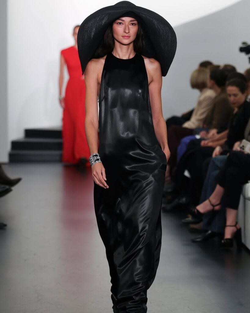 Minimalism doesn’t mean invisibility. A floor-length gown in silky white imposes its presence not by excess of ornament, but by purity of line. The accessory becomes punctuation: a silver pendant, a wide-brimmed hat, a shimmer of sequins. Even the monochrome palettes carry emotion: the starkness of black, the ambition of red, the clarity of white.