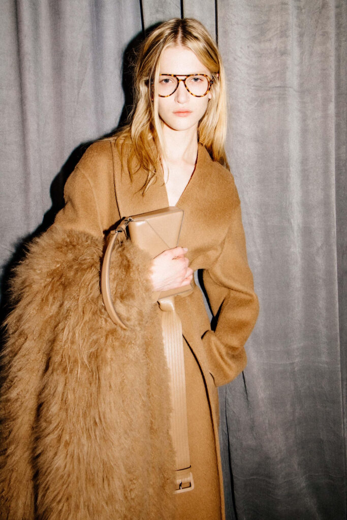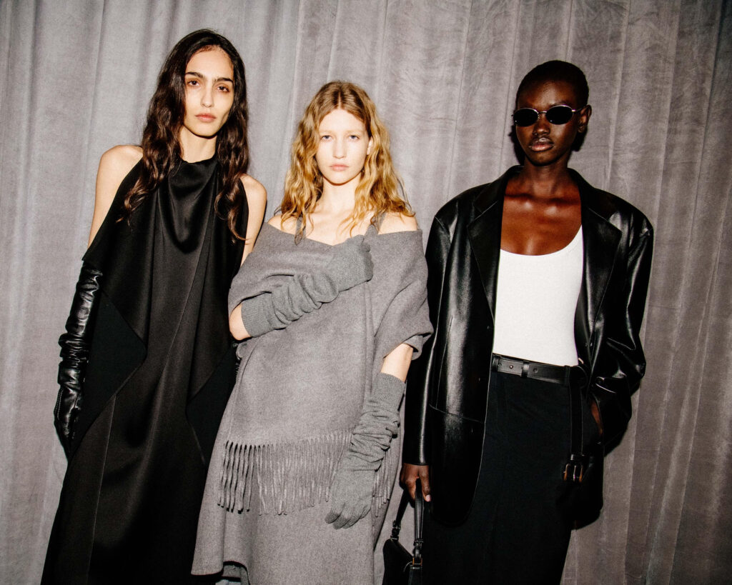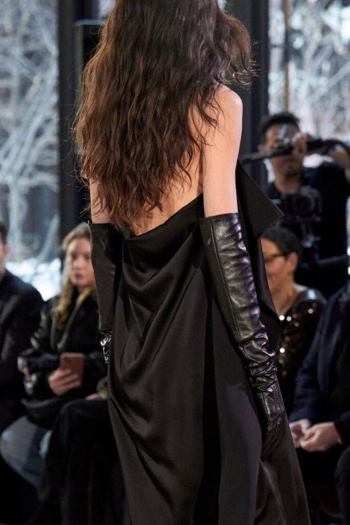 What struck most was the tension between structure and ease. Oversized tailoring, languid jersey gowns, and bias-cut coats offered an interplay of control and freedom. A bandeau top, swapped in at the eleventh hour for a traditional blouse, became a moment of pure instinct — and pure impact. Backstage, decisions like this weren’t chaotic; they were intuitive, grounded in decades of understanding how women want to move through the world: unencumbered, yet unmissable.
