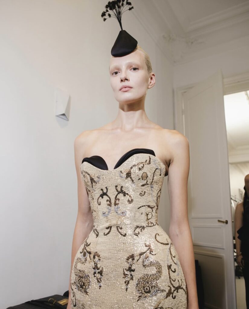 Backstage at Ashi Studio’s Fall 2025 Haute Couture show, nestled within the quiet dignity of 1, Rue de Longchamp, time seemed to move differently. There was no frenzy—only breath, stillness, and the sound of fabric brushing against fabric.