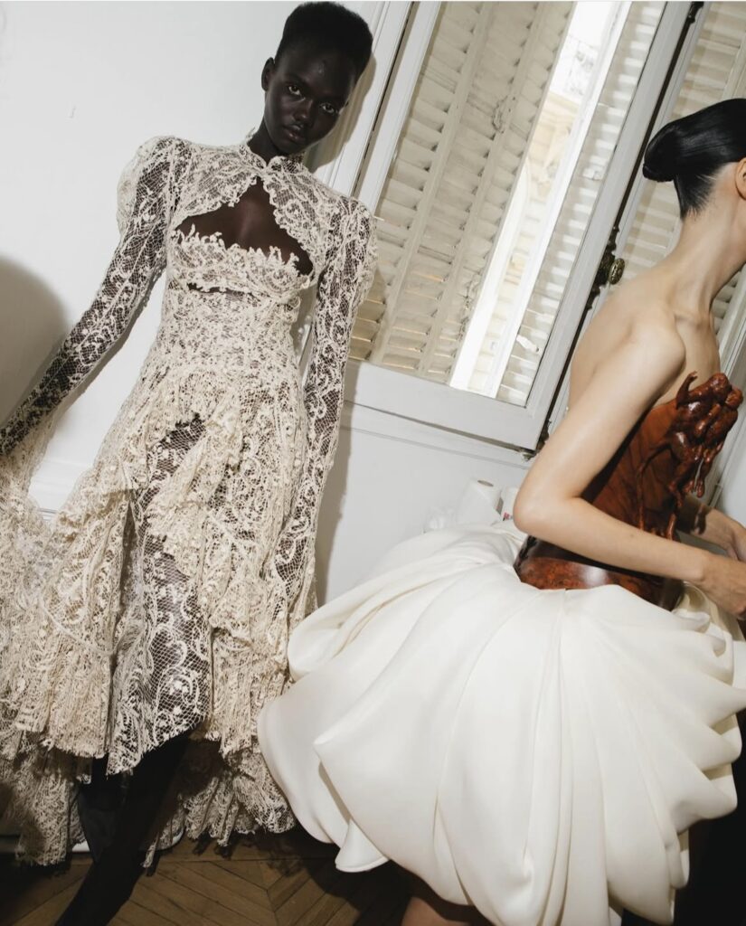 Backstage remained hushed after their departure. An untouched coffee cooled slowly on a corner table. A thread lay forgotten on the floor. But the room still held the presence of something quietly transcendent of couture not merely worn, but breathed into being.